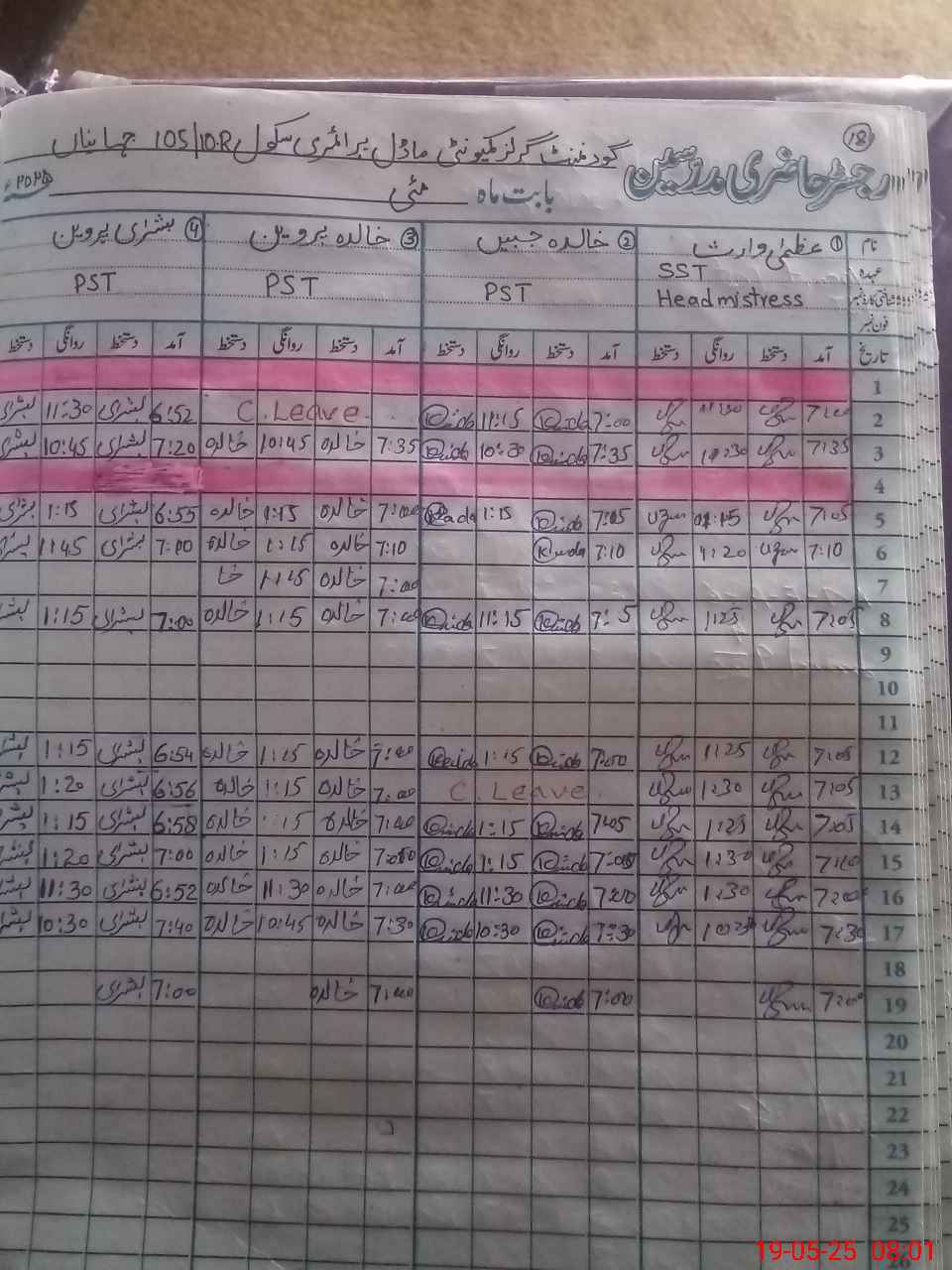 | CNIC | Full Name | Designation | R/C | Absence During Last Calender Month |