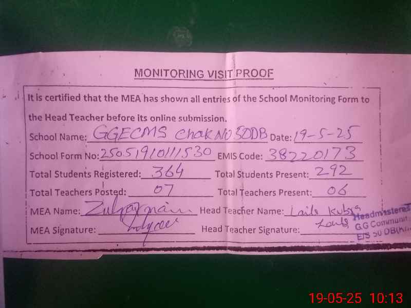 | EMIS Code: 38220173 | Name of School: GGECMS CHAK NO. 50/DB | |||