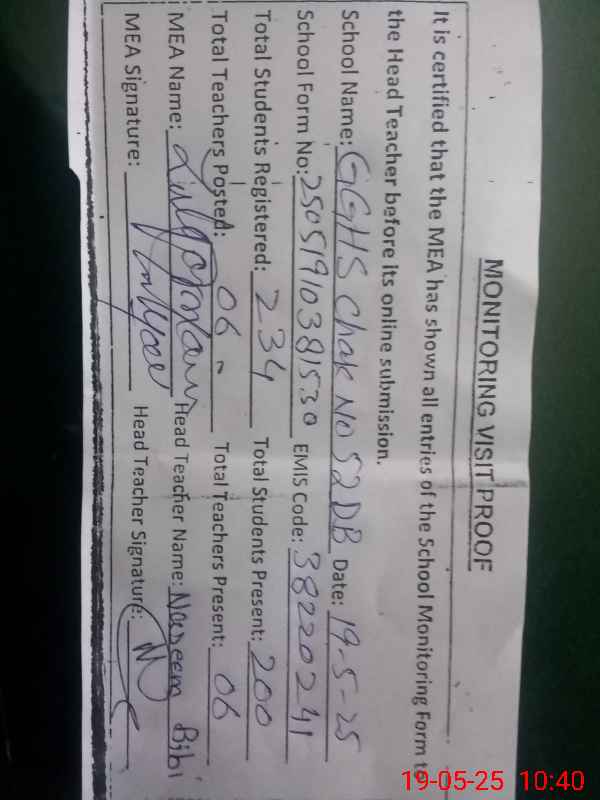 | EMIS Code: 38220241 | Name of School: GGHS CHAK NO. 52 DB NOORPUR | |||