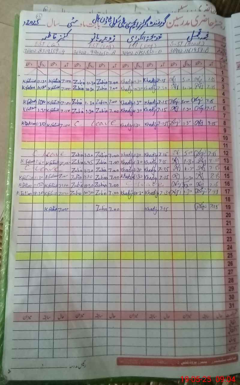| CNIC | Full Name | Designation | R/C | Absence During Last Calender Month |