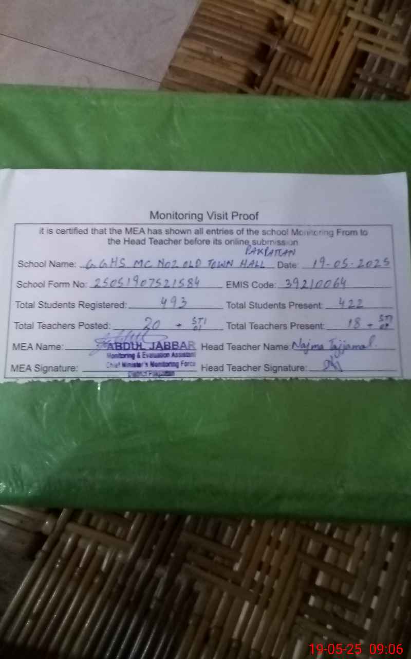 | EMIS Code: 39210064 | Name of School: GGHS MC NO. 2 OLD TOWN HALL PAKPATTAN | |||