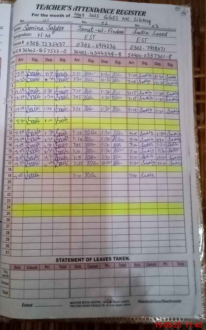 | Name: Hu**** Iq**** Designation: (School Headmaster's/Headmistress's) EST Phone/Cell Number: 03**** |