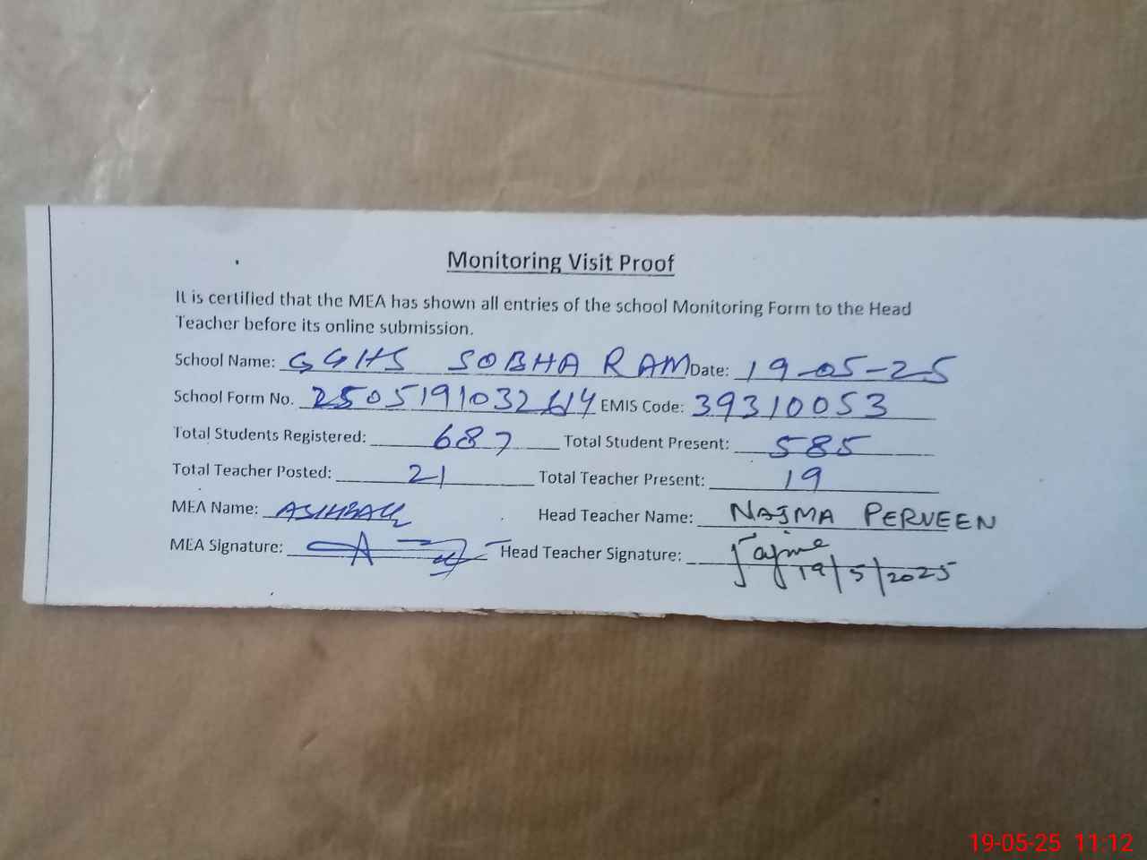 | EMIS Code: 39310053 | Name of School: GGHS SOBHA RAM | |||