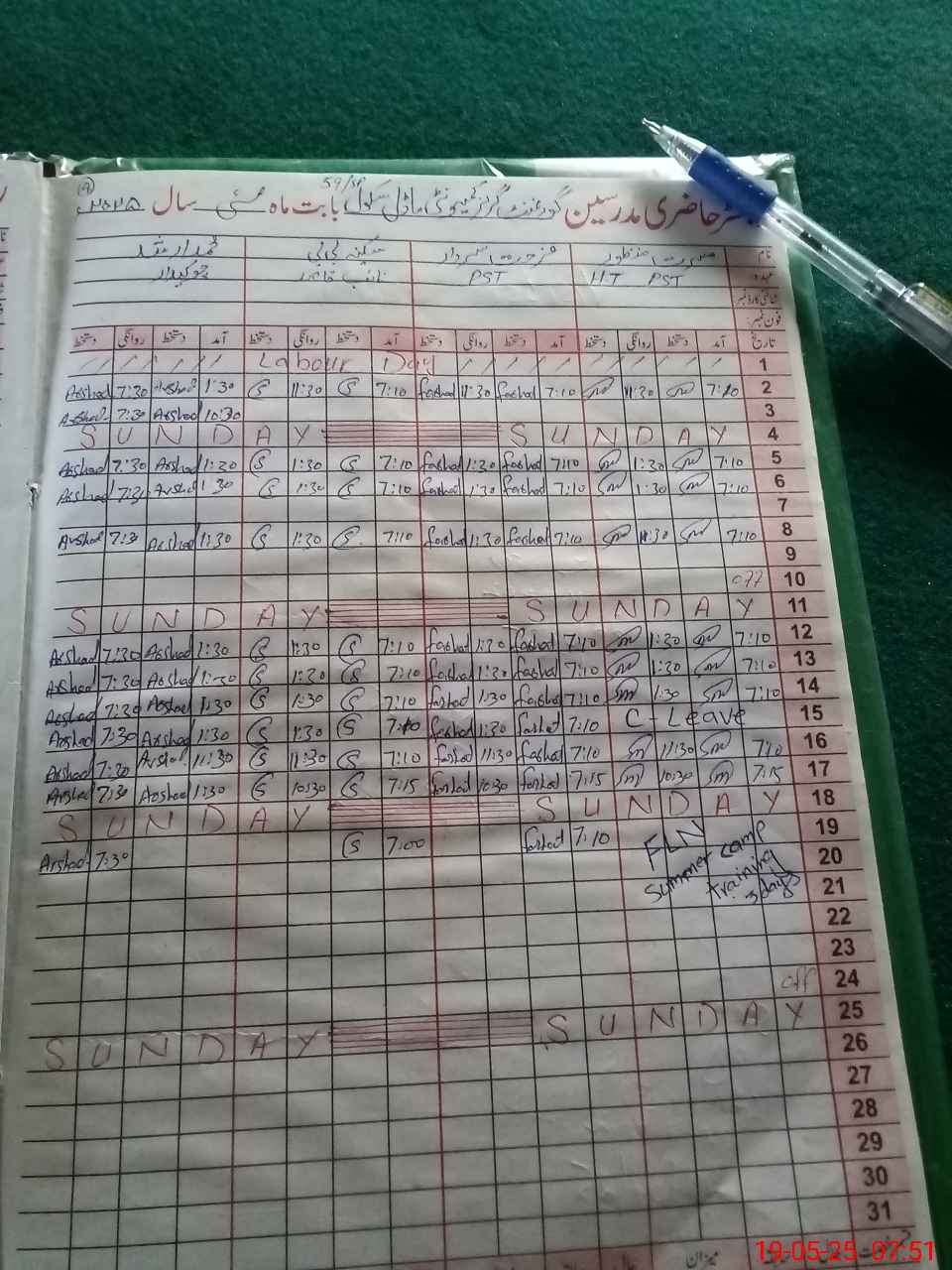 | CNIC | Full Name | Designation | R/C | Absence During Last Calender Month |