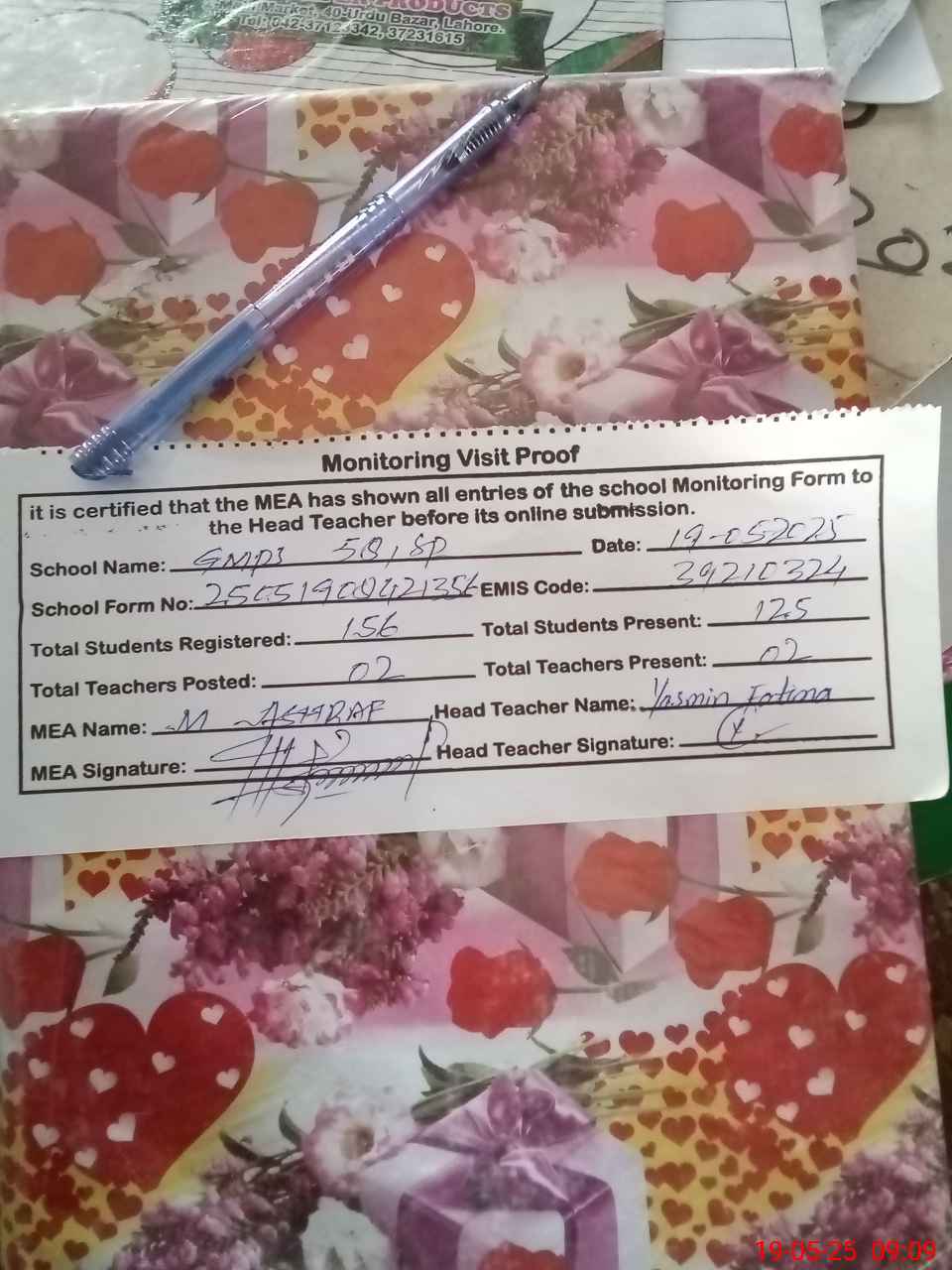 | Certified that this School was Inspected by the Undersigned MEA/DMO Today and the Information Stated Above is as Per Record. | |||||