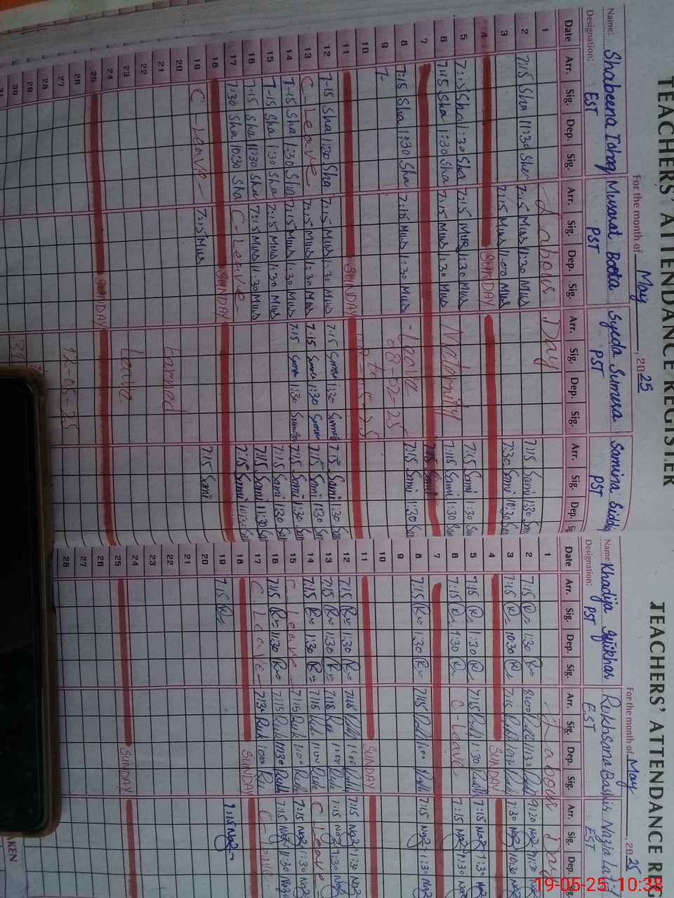 | 34**** | Ru**** Ba**** | EST | Regular | 0 | 0 | 0 | 0 | 0 | 0 | 0 | 0 | 0 | Exam Duty |