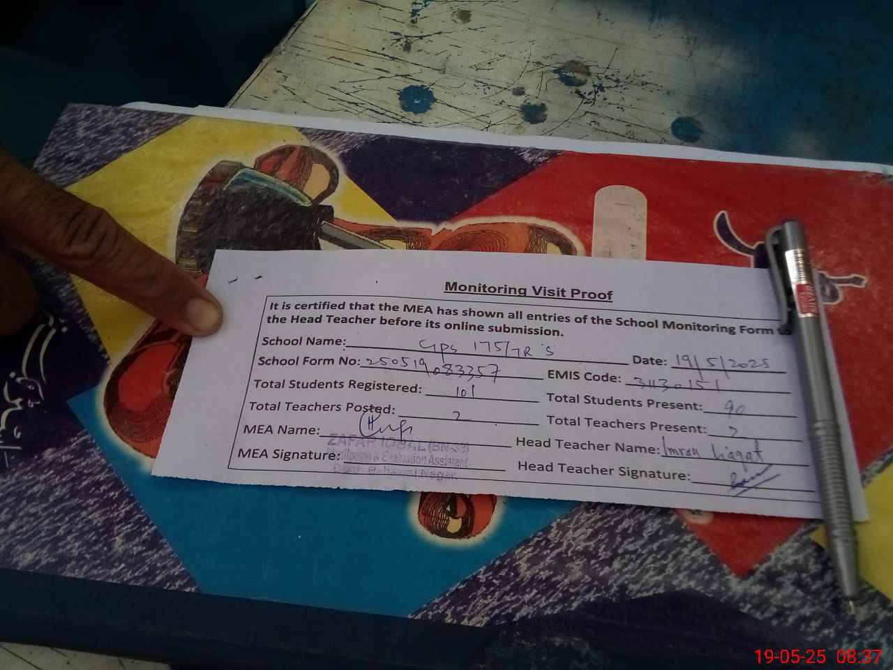 | EMIS Code: 31130151 | Name of School: GPS CHAK NO 175 7R SOUTH | |||