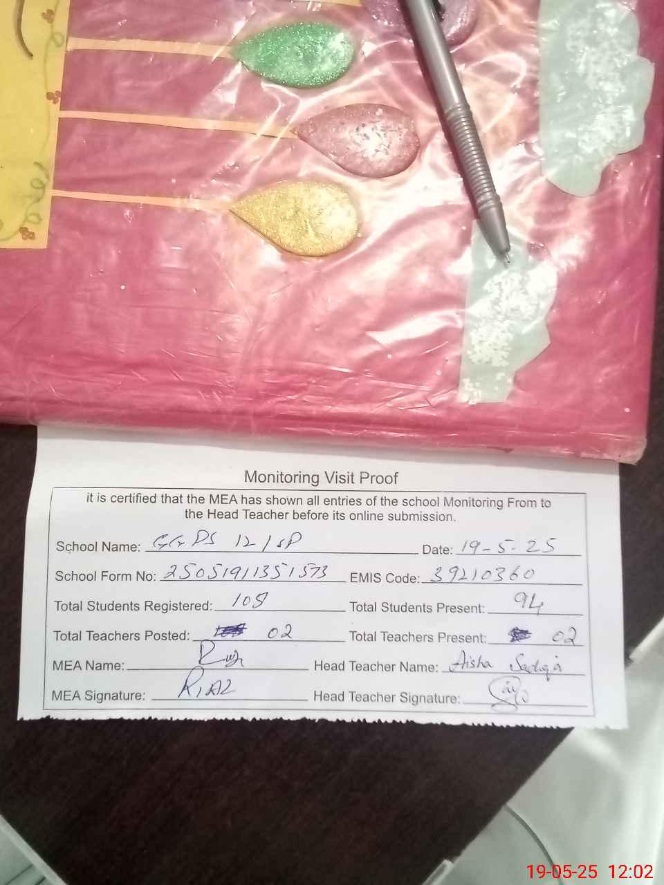 | EMIS Code: 39210360 | Name of School: GGPS 12 SP | |||