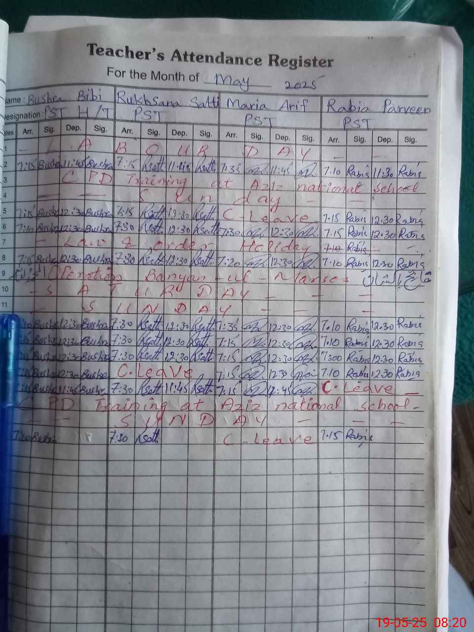 | Remarks (Use Separate Page if Required): Arif Mehmood SG is attached from GES Lakhan and Physical present in school | |||||