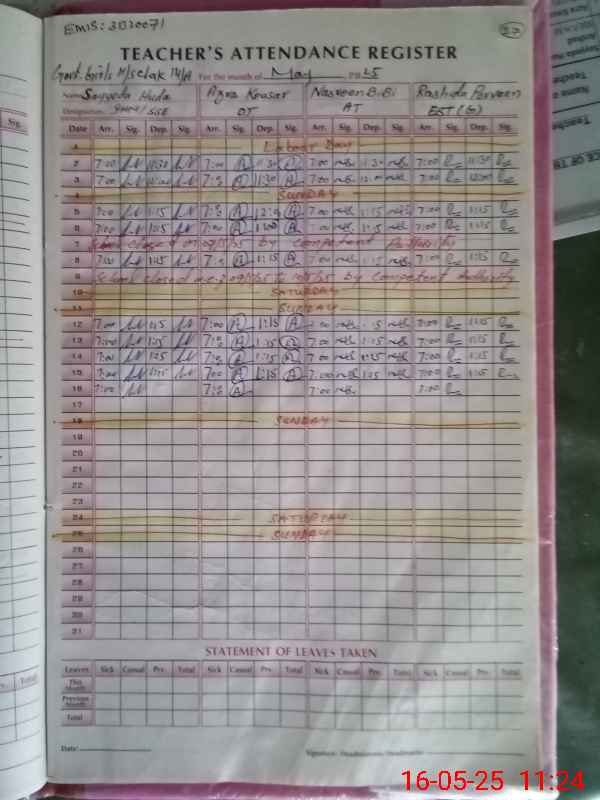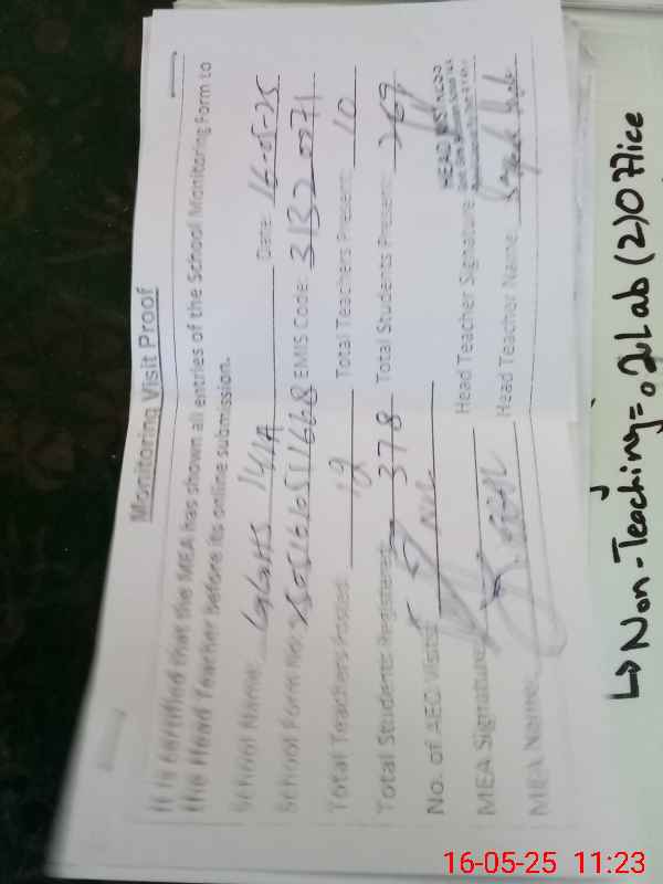 | Attendance Register | Head Teacher | MEA with School | Visit Proof |