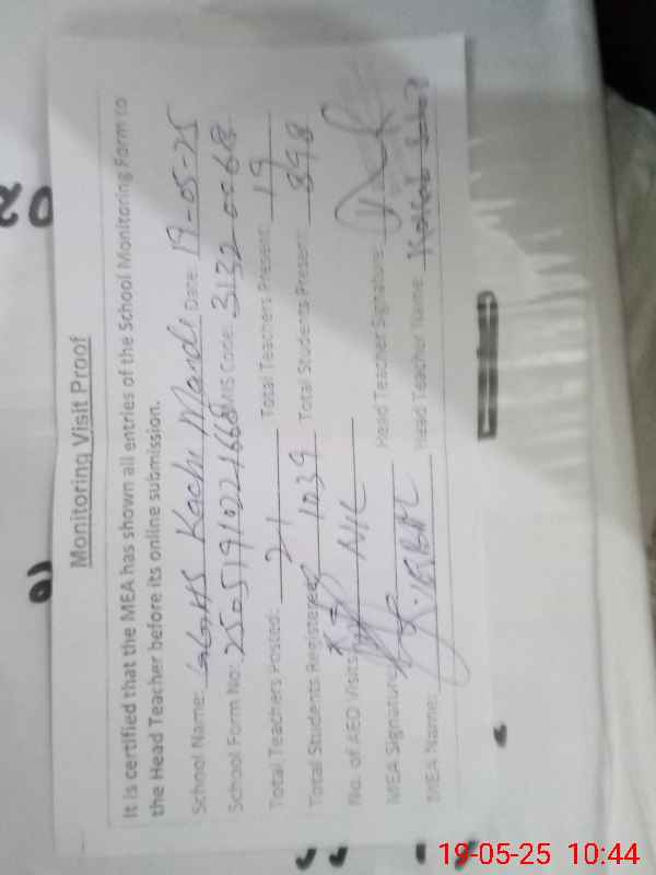 | Attendance Register | Head Teacher | MEA with School | Visit Proof |