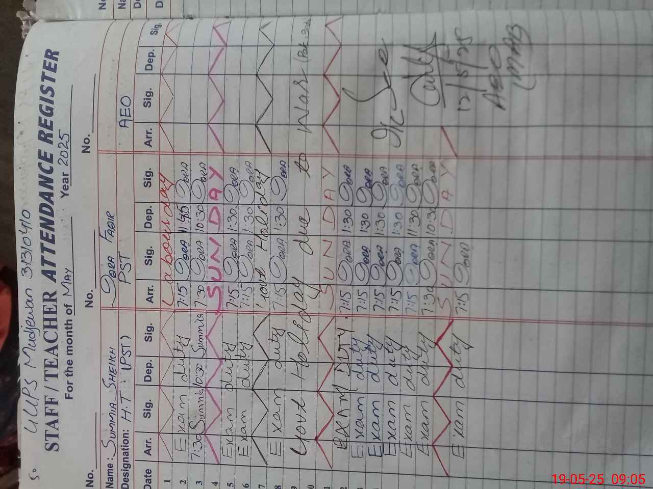 | 31**** | Su**** Sh**** | PST | Regular | 3 | 1 | 0 | 0 | 0 | 0 | 0 | 0 | 3 | Exam Duty |