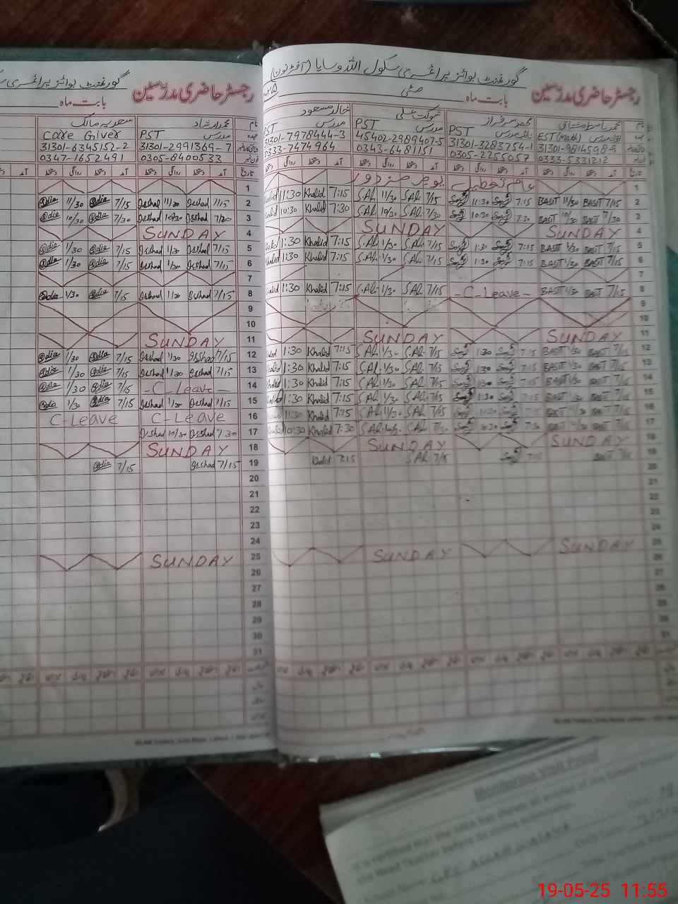 | CNIC | Full Name | Designation | R/C | Absence During Last Calender Month |