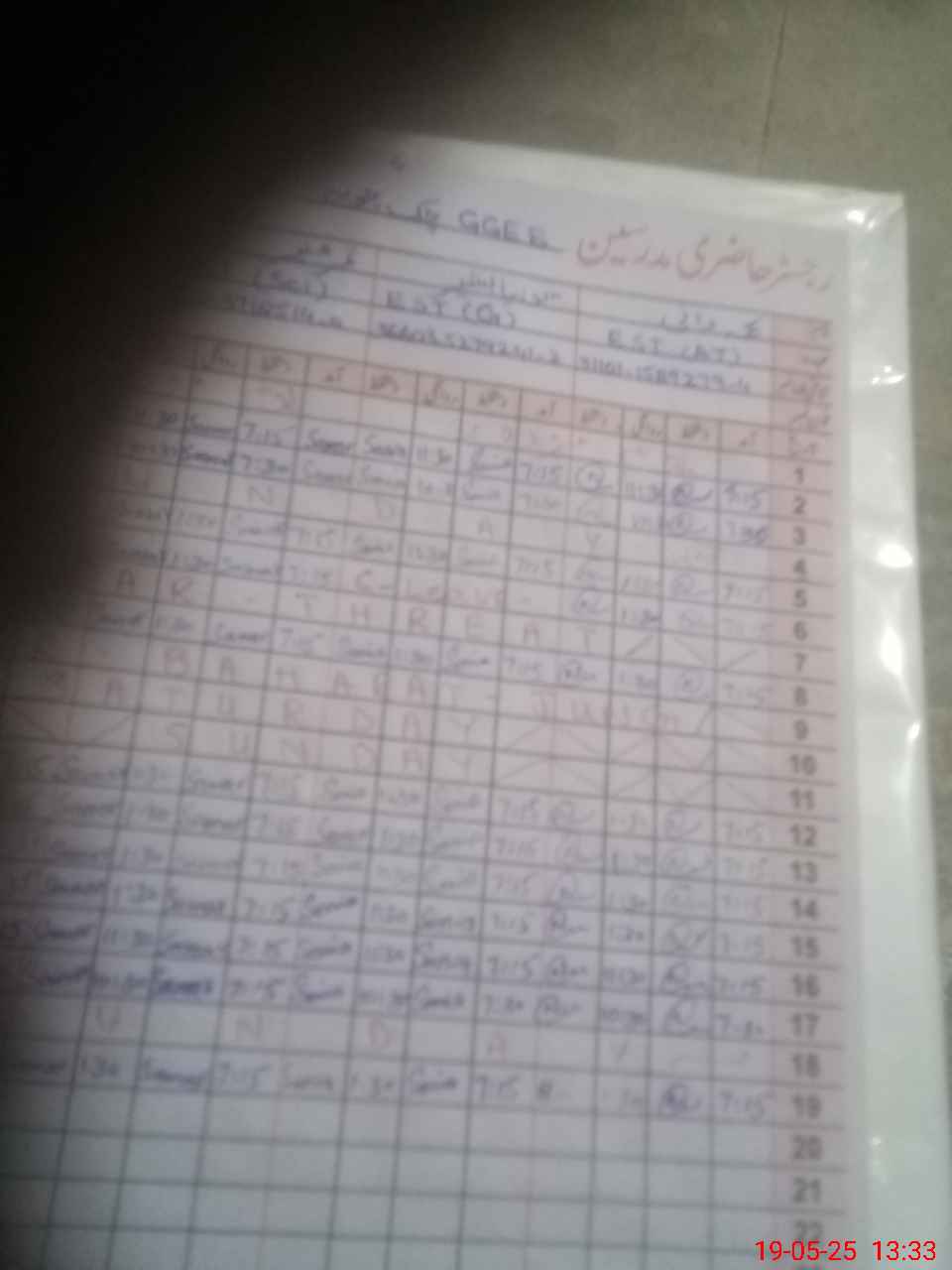 | CNIC | Full Name | Designation | R/C | Absence During Last Calender Month |
