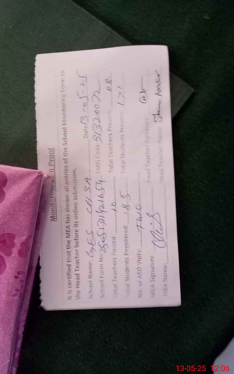 | Attendance Register | Head Teacher | MEA with School | Visit Proof |