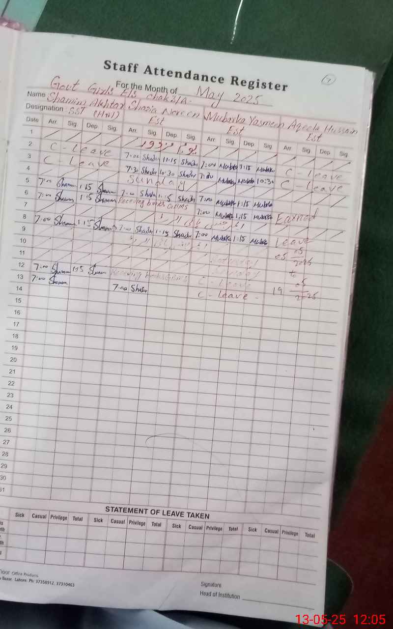 | Name: SH**** AK**** Designation: (School Headmaster's/Headmistress's) S.S.T.(G) Phone/Cell Number: 03**** |