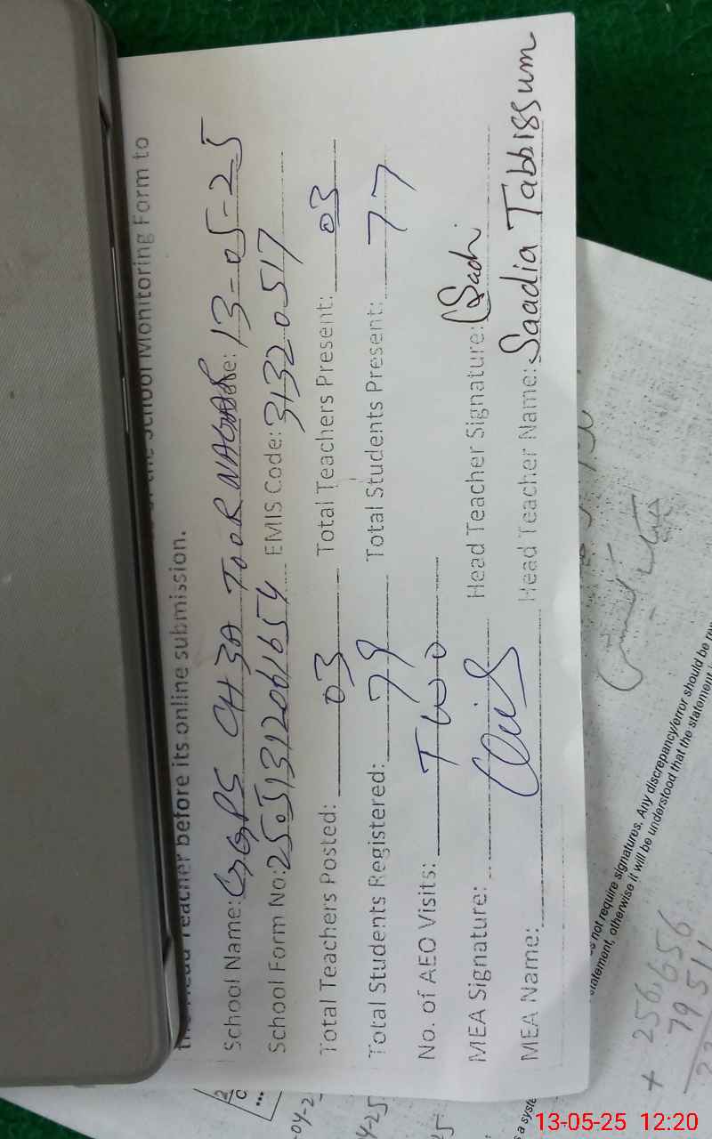 | Attendance Register | Head Teacher | MEA with School | Visit Proof |