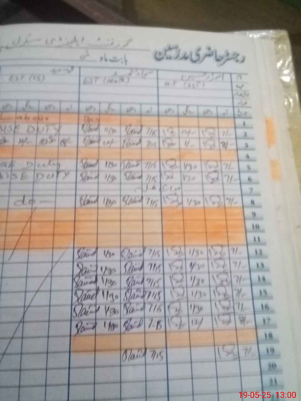 | CNIC | Full Name | Designation | R/C | Absence During Last Calender Month |
