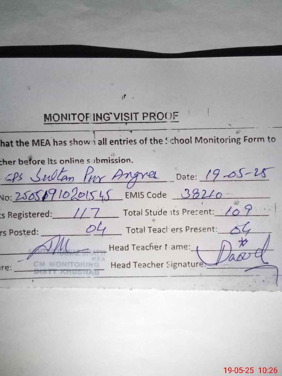| EMIS Code: 38210460 | Name of School: GES SULTAN PUR ANGRA | |||