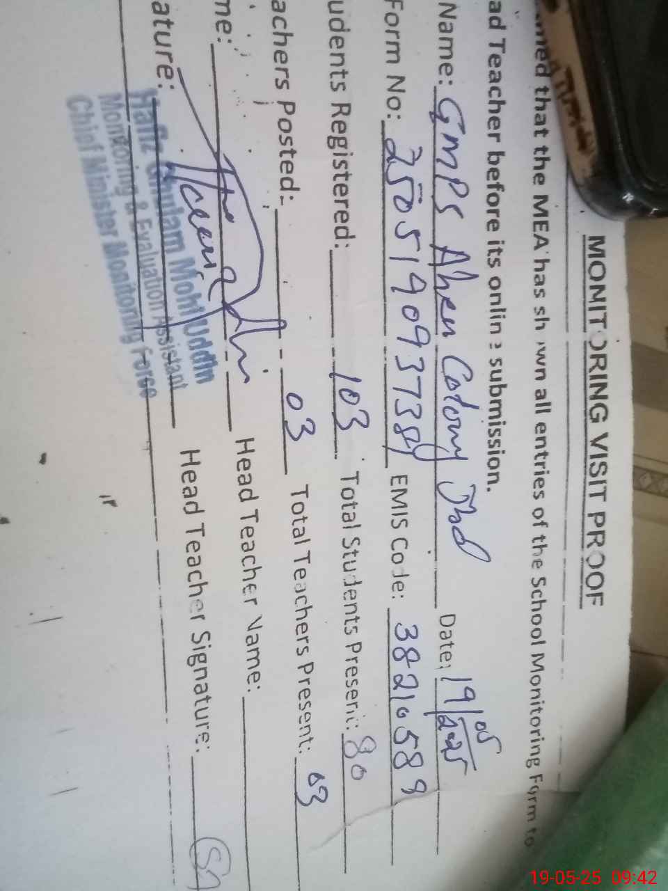 | EMIS Code: 38210589 | Name of School: GMPS AHEER COLONY | |||