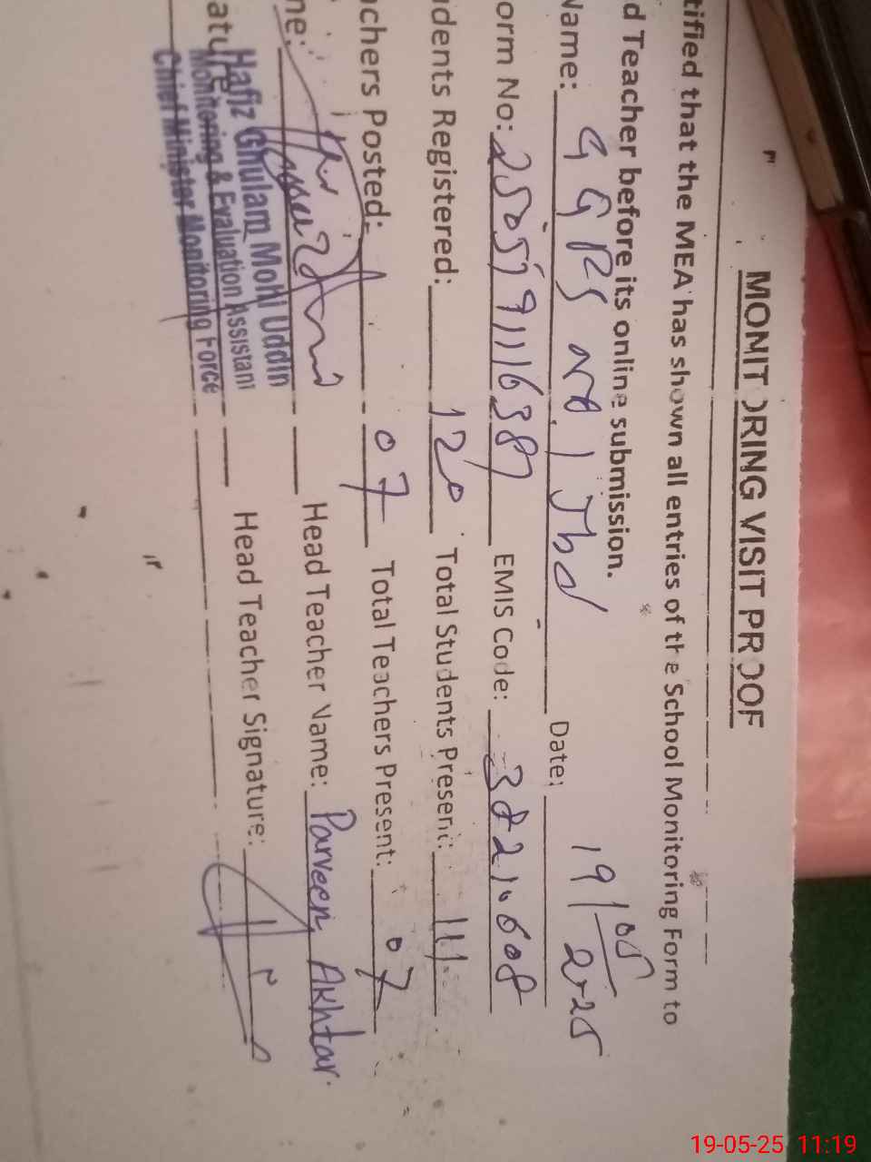 | EMIS Code: 38210608 | Name of School: GGPS NO. 1 JAUHARABAD | |||