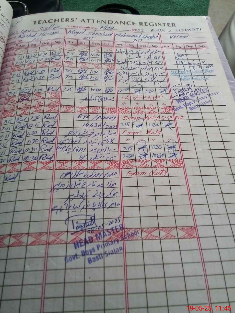 | 31**** | Mu**** Sa**** | PST | Regular | 0 | 0 | 0 | 0 | 0 | 0 | 0 | 0 | 0 | Exam Duty |