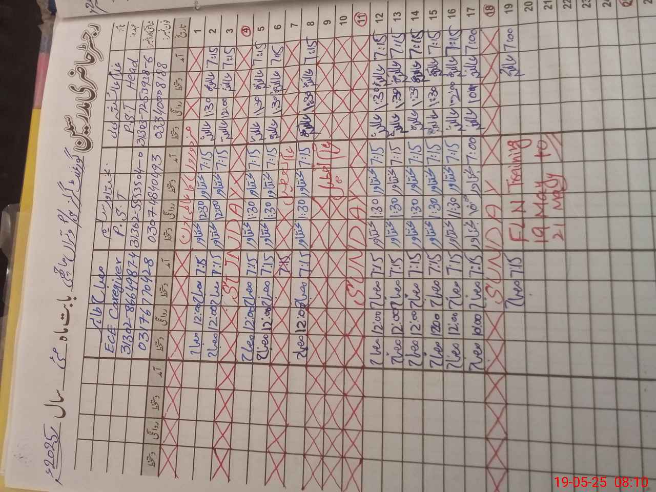 | CNIC | Full Name | Designation | R/C | Absence During Last Calender Month |