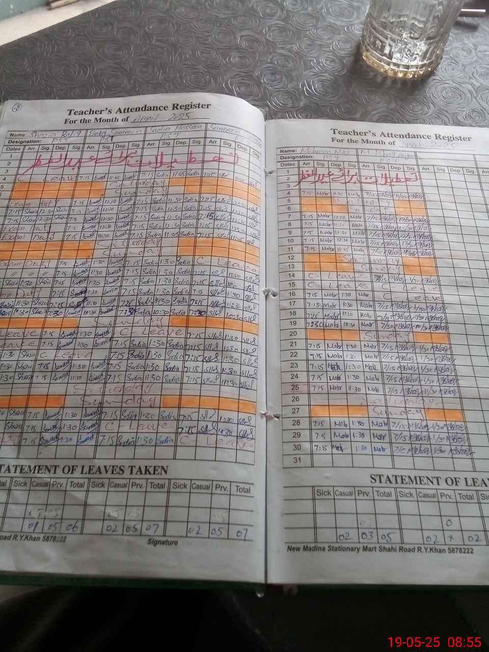 | CNIC | Full Name | Designation | R/C | Absence During Last Calender Month |