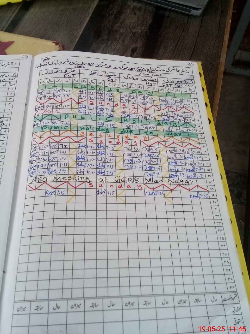 | CNIC | Full Name | Designation | R/C | Absence During Last Calender Month |