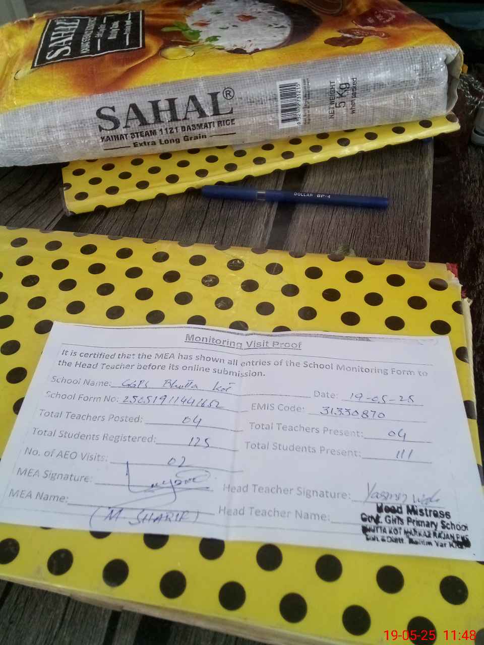 | Attendance Register | Head Teacher | MEA with School | Visit Proof |