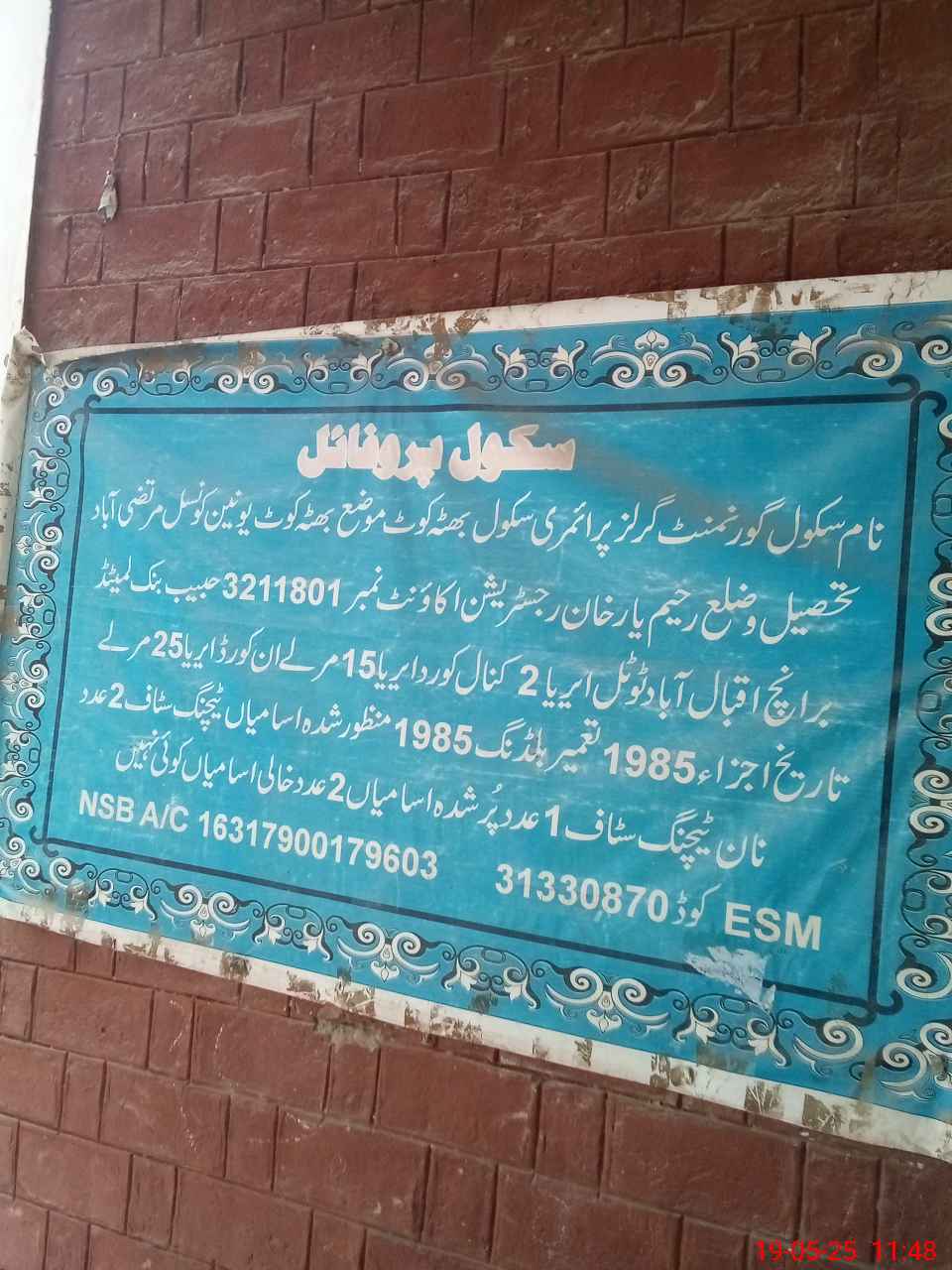 | EMIS Code: 31330870 | Name of School: GGPS BHUTTA KOT | |||