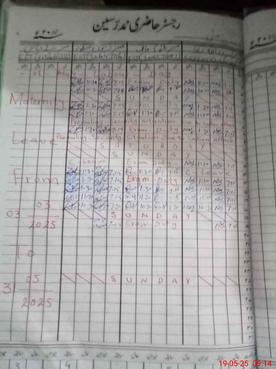 | 31**** | Ka**** Fa**** | 3 | 1 | 0 | 0 | 0 | 0 | 0 | 0 | 0 | 0 | 0 | Exam Duty |