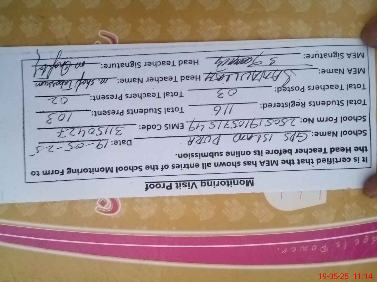 | EMIS Code: 31150427 | Name of School: GPS ISLAM PURA | |||