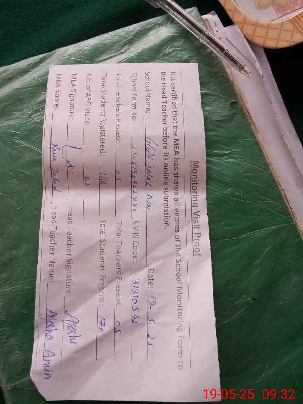 | Certified that this School was Inspected by the Undersigned MEA/DMO Today and the Information Stated Above is as Per Record. | |||||