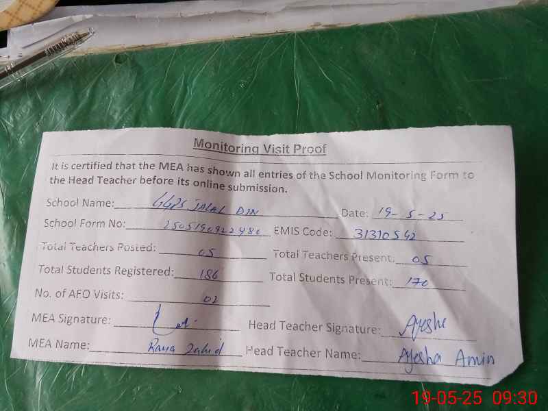 | EMIS Code: 31310542 | Name of School: GGPS BASTI JALAL DIN | |||
