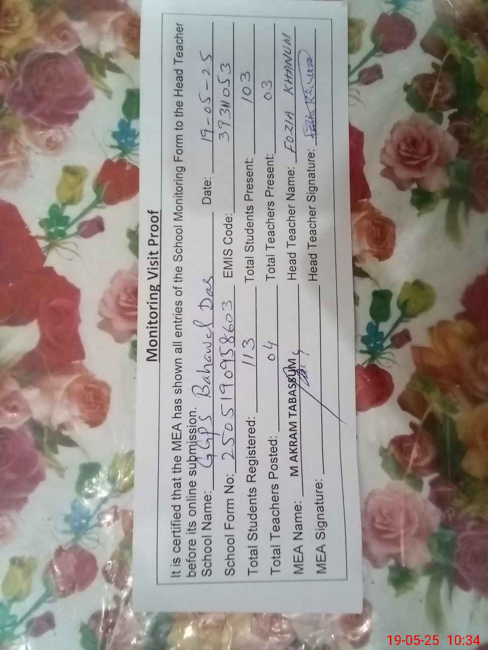 | EMIS Code: 39311053 | Name of School: GGPS BAHAWAL DAS | |||