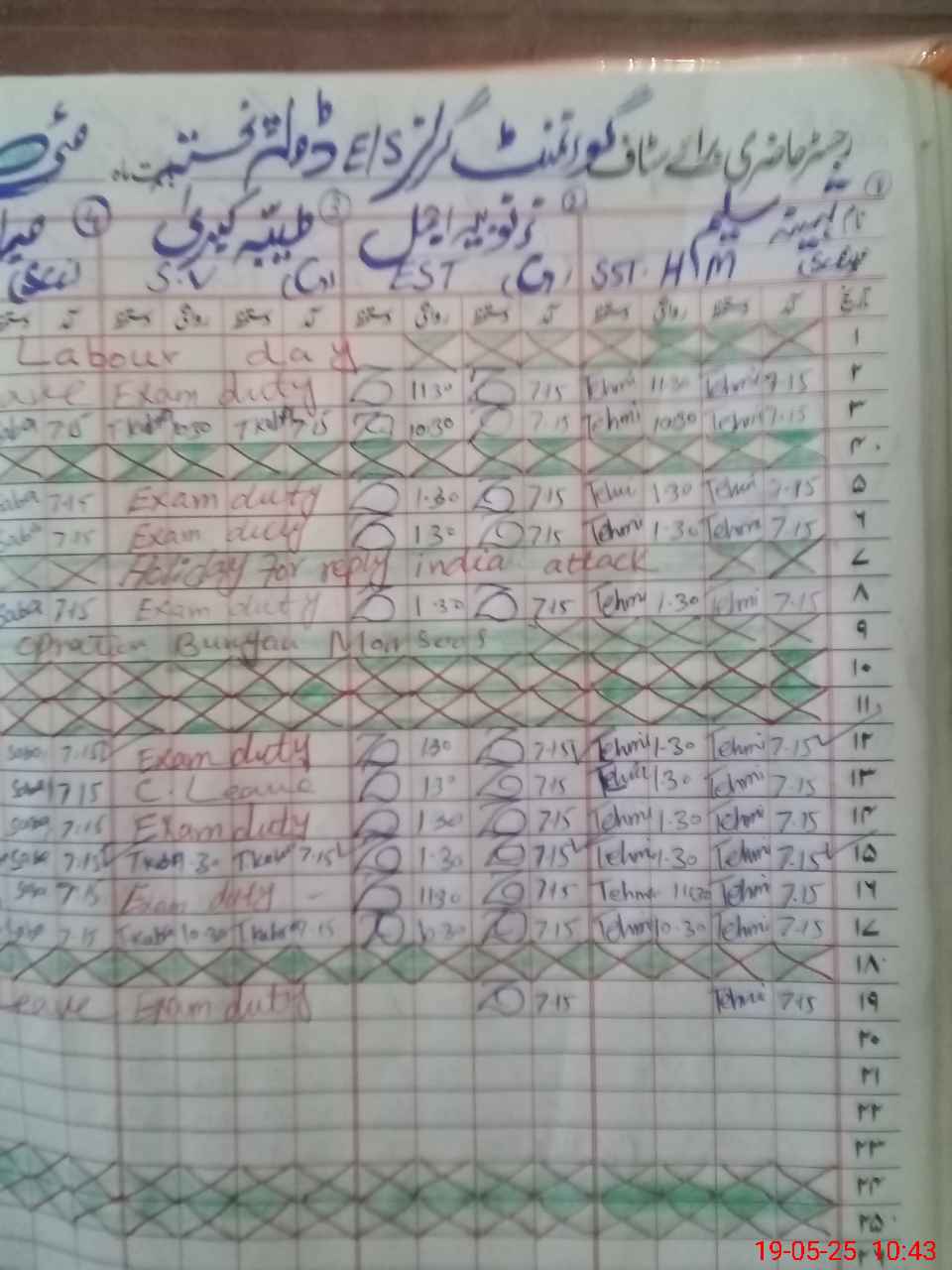| 35**** | Ta**** Ku**** | EST | Regular | 0 | 0 | 0 | 0 | 0 | 0 | 0 | 0 | 0 | Exam Duty |