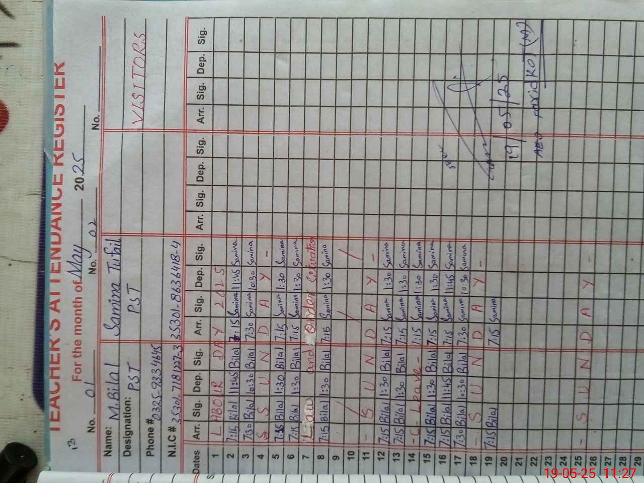 | Name: MU**** Bi**** Designation: (School Headmaster's/Headmistress's) PST Phone/Cell Number: 03**** |