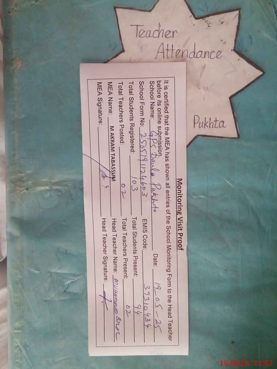 | EMIS Code: 39310434 | Name of School: GPS DAULA PUKHTA | |||