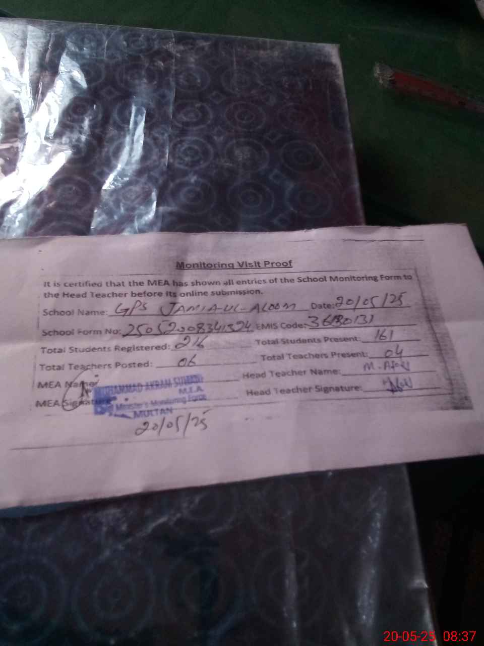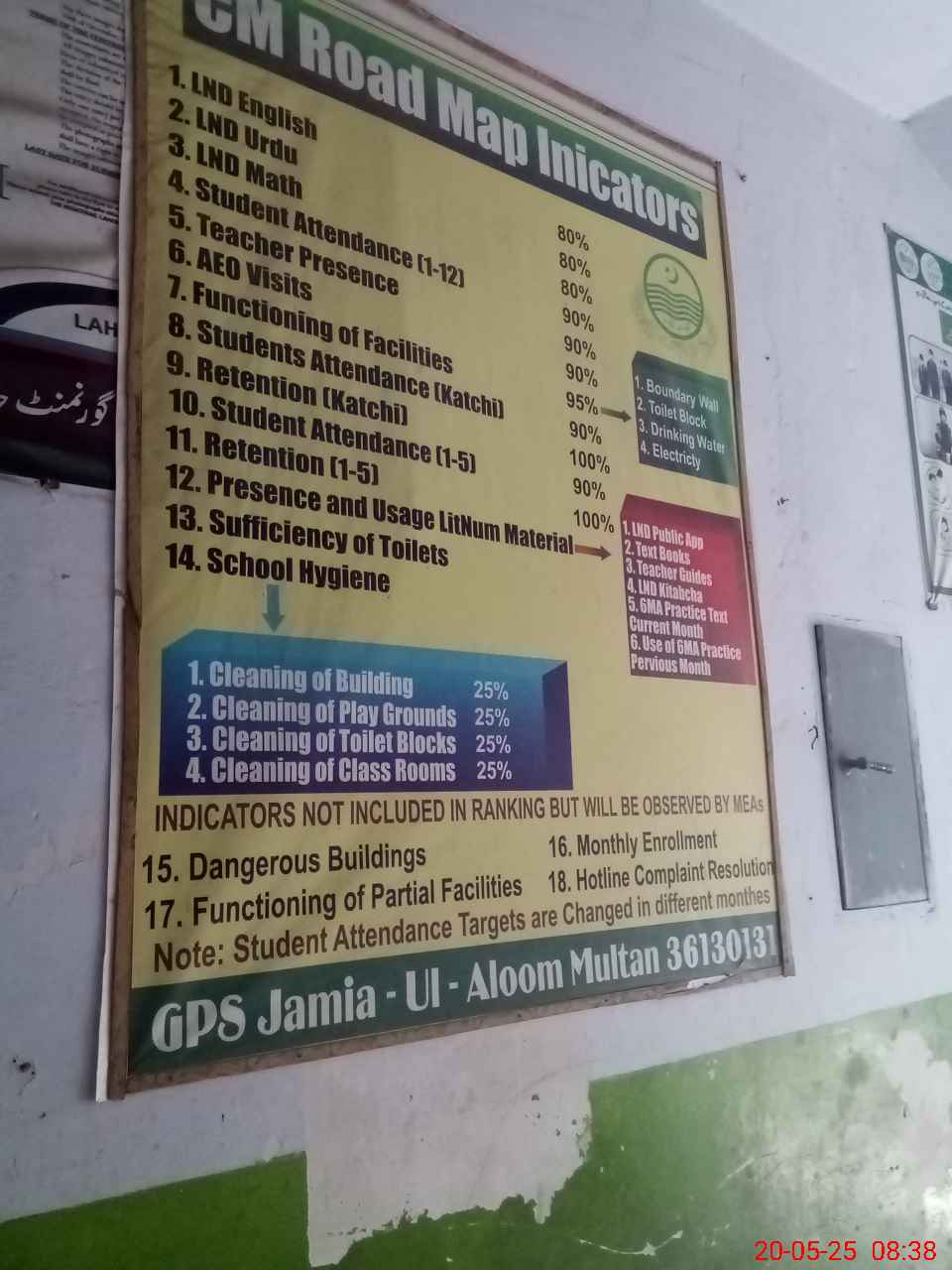 | EMIS Code: 36130131 | Name of School: GPS JAMI UL ALOOM DOULAT GATE MULTAN | |||