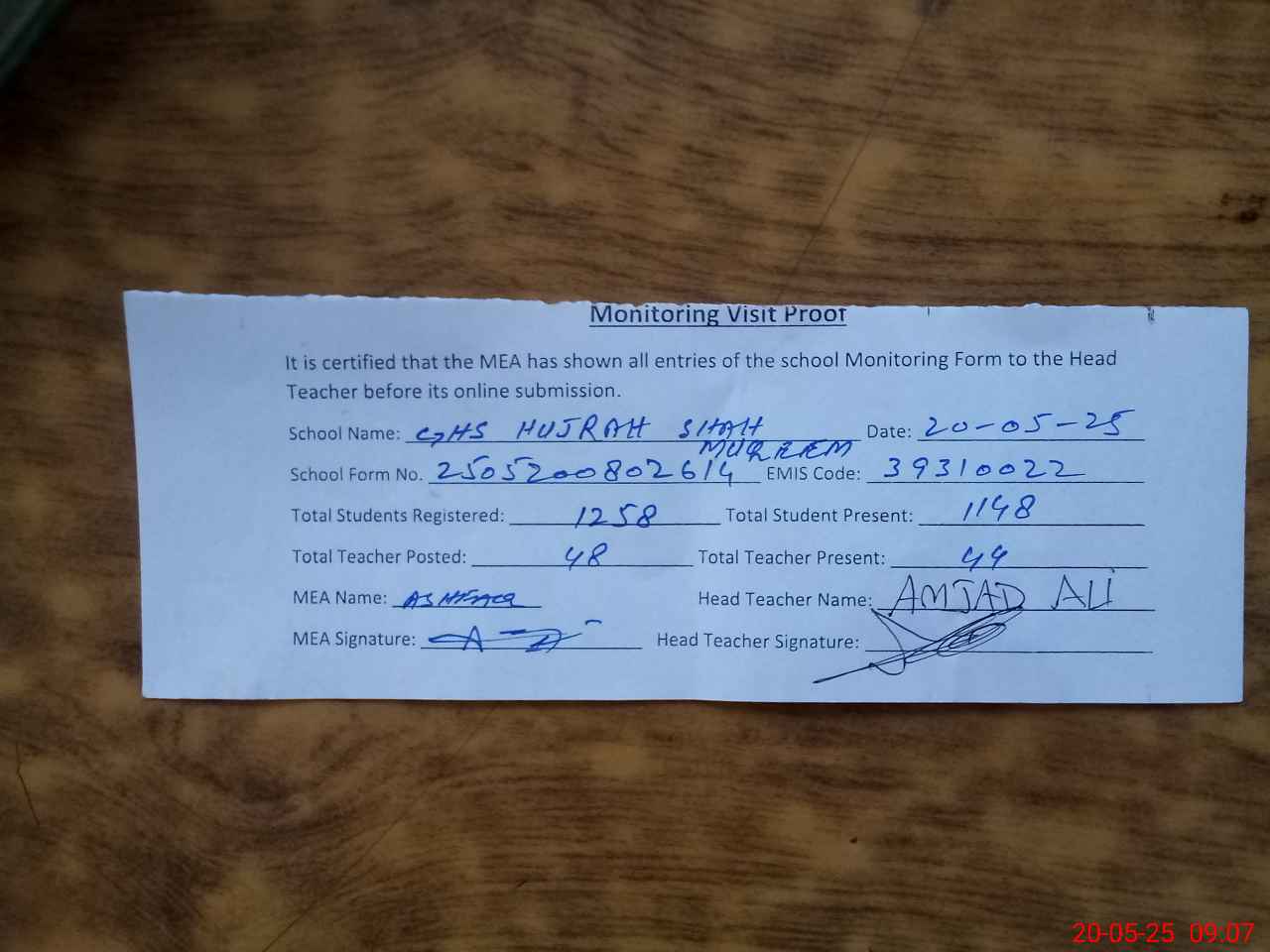 | EMIS Code: 39310022 | Name of School: GHS HUJRA SHAH MUQEEM | |||
