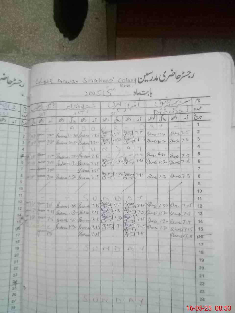 | 35**** | Sh**** Ta**** | PST | Regular | 0 | 0 | 0 | 0 | 0 | 0 | 0 | 0 | 0 | Exam Duty |