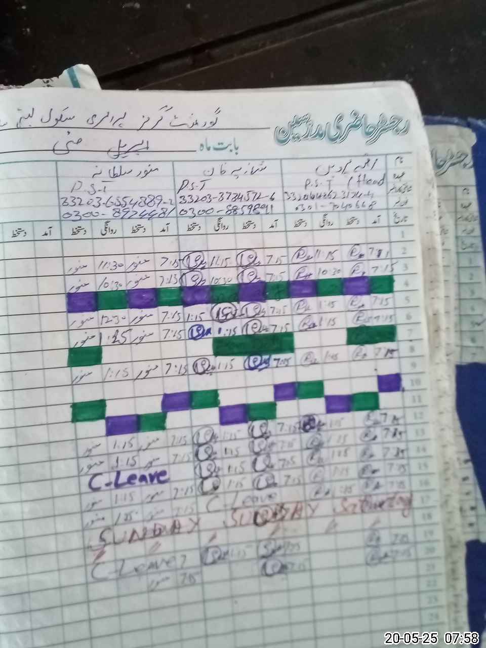 | CNIC | Full Name | Designation | R/C | Absence During Last Calender Month |