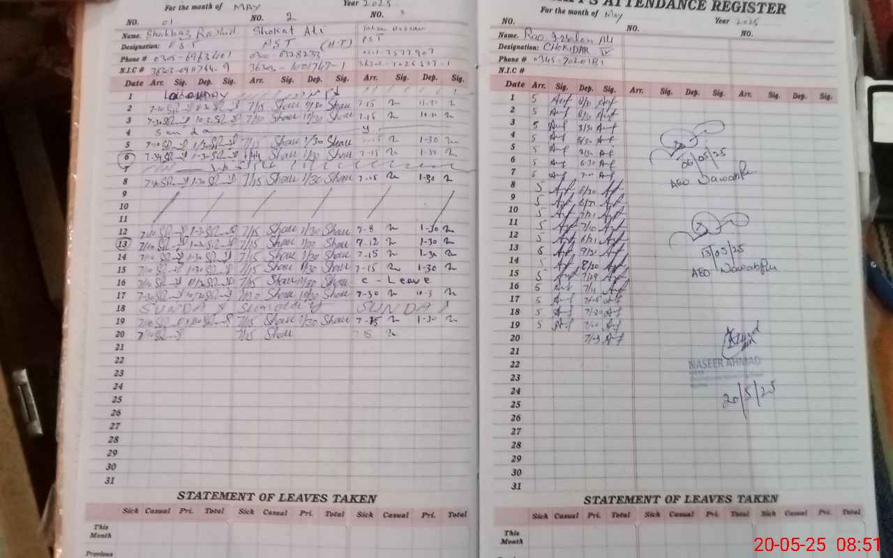 | CNIC | Full Name | Designation | R/C | Absence During Last Calender Month |