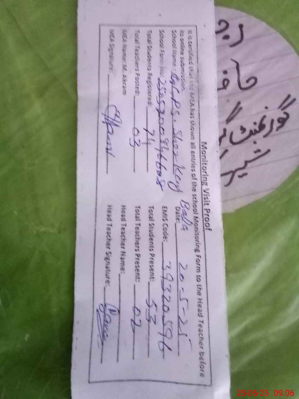 | EMIS Code: 39320596 | Name of School: GGPS SHER KAY BALA | |||