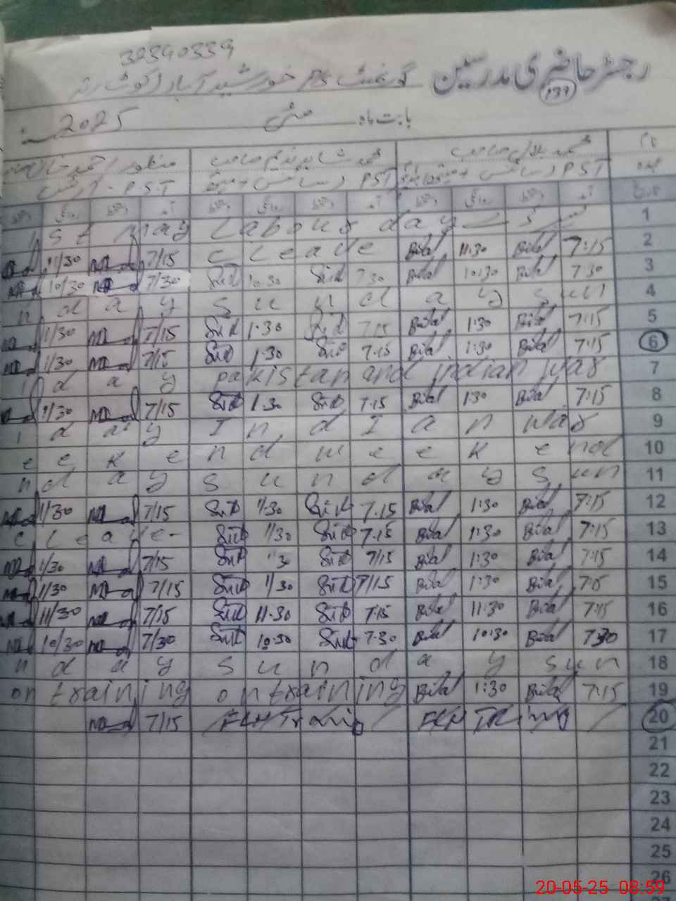 | CNIC | Full Name | Designation | R/C | Absence During Last Calender Month |