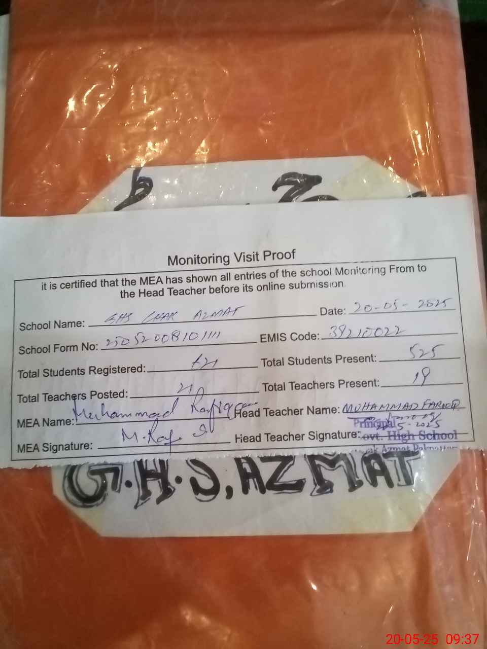 | EMIS Code: 39210022 | Name of School: GHS CHAK AZMAT | |||