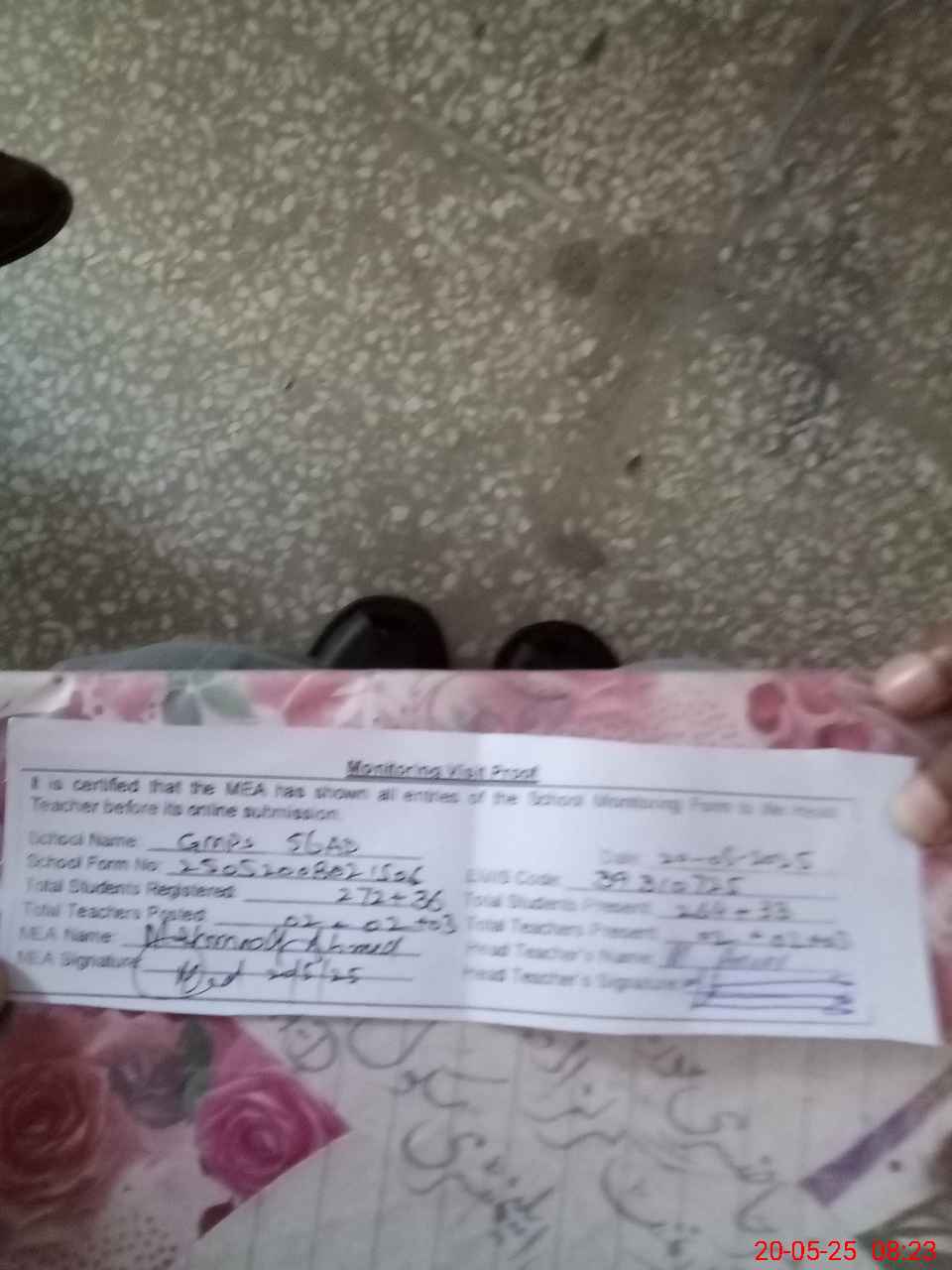 | Certified that this School was Inspected by the Undersigned MEA/DMO Today and the Information Stated Above is as Per Record. | |||||