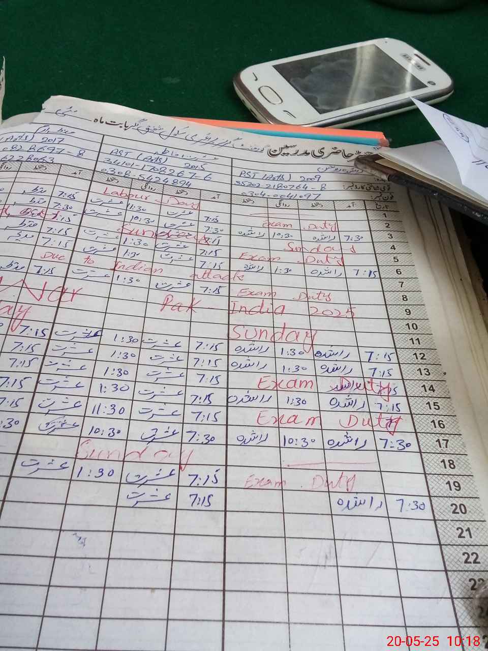 | CNIC | Full Name | Designation | R/C | Absence During Last Calender Month |