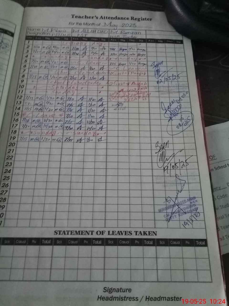 | Name: Mu**** Wa**** Designation: (School Headmaster's/Headmistress's) P S T Phone/Cell Number: 03**** |